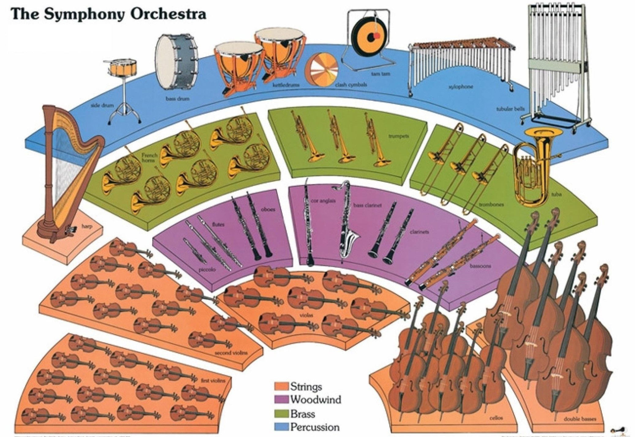 - Number of Instruments – A string orchestra has only strings, while a full orchestra has strings, woodwinds, brass, and percussion.